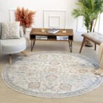 Découvrez l’élégance intemporelle du tapis rond vintage lavable machine gris or