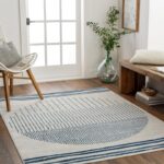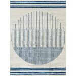 Découvrez le charme du tapis scandinave hygge beige avec rond en lignes bleues